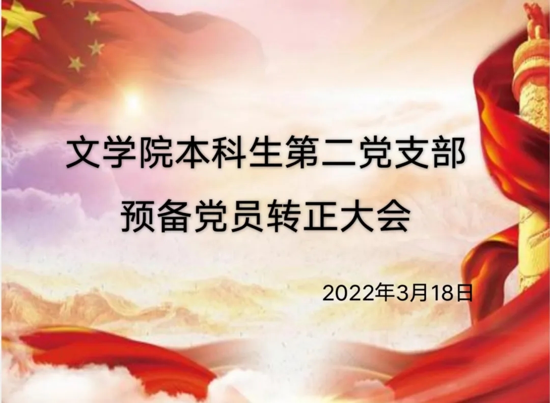 为配合疫情防控工作,3月18日,太阳集团网tyc9728本科生第二党支部预备党员转正大会于线上举行。文学师生党员参与其中。