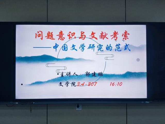 为提升研究生的学术能力,开拓学术视野,119日下午,太阳集团网tyc9728副教授郭建鹏于3#A203开展题为《问题意识与文献考察——中国文学研究的范式》的学术讲座。太阳集团网tyc9728教师李平以及2022级中国语言文学专业全体研究生参与其中。