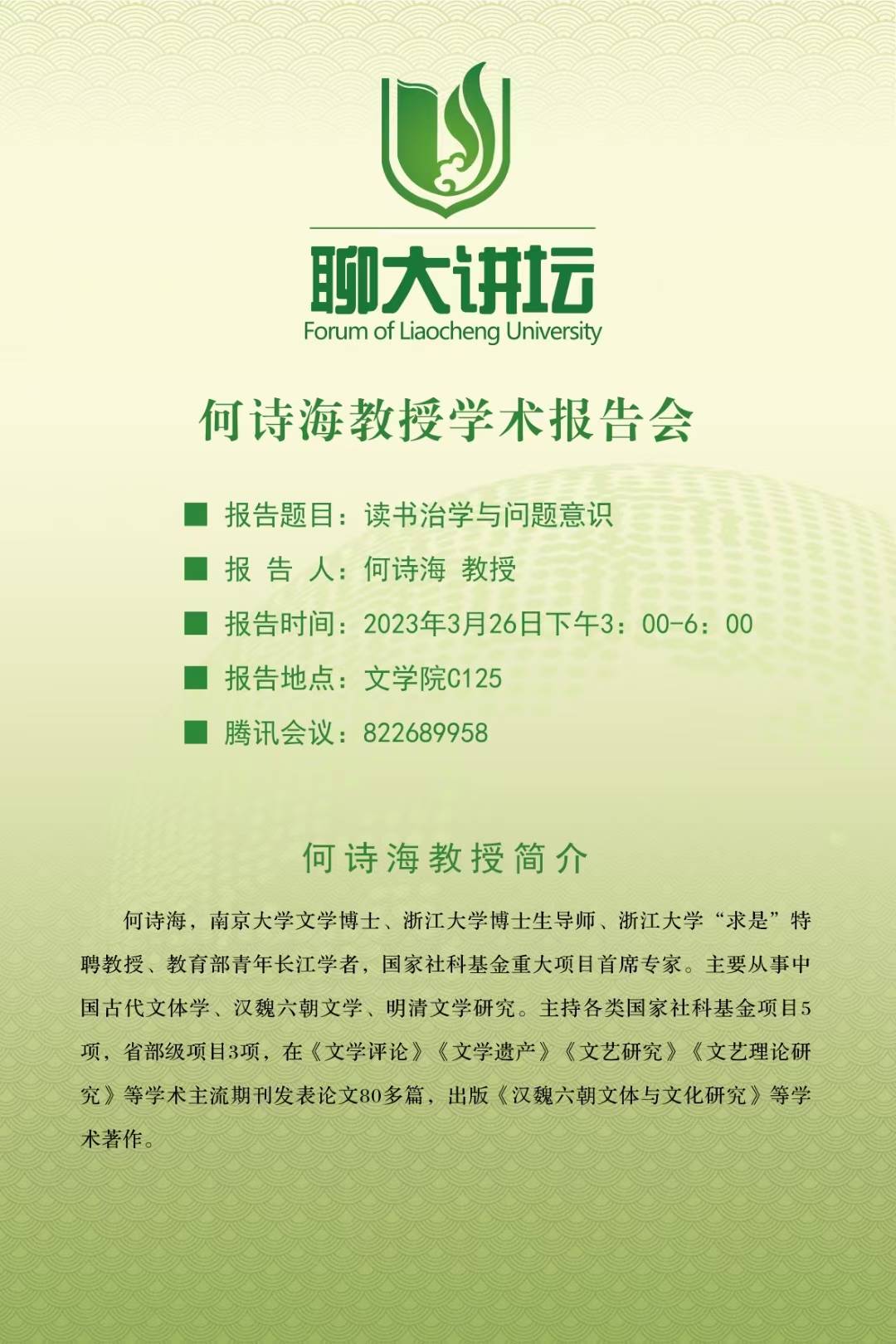 读求知之书 探研学之问 太阳集团网tyc9728邀请何诗海教授开展学术报告会