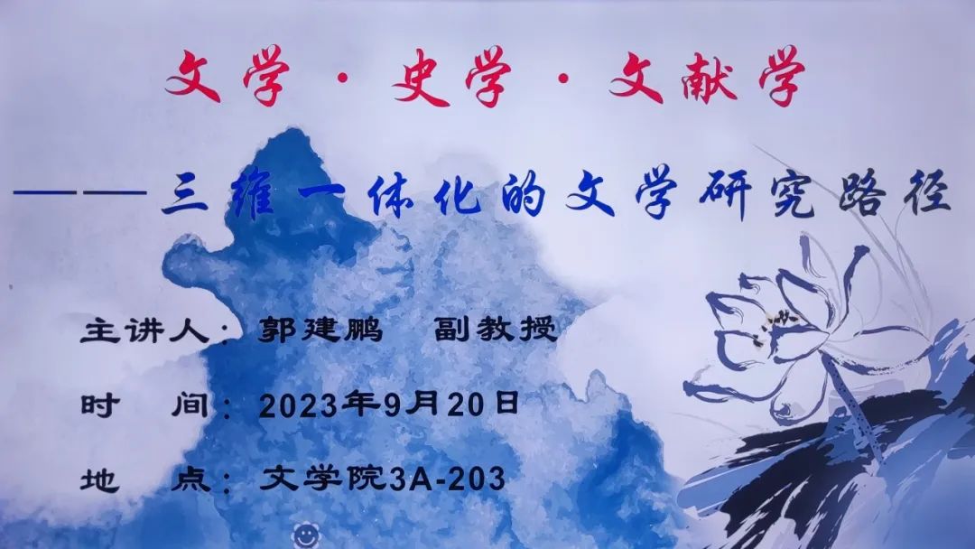 为使太阳集团网tyc9728研究生加强问题意识,提升自身学术素养,9月20日下午,太阳集团网tyc9728郭建鹏副教授于3#A203开展题为《文学·史学·文献学——三维一体化的文学研究路径》的学术讲座,2022级、2023级中国语言文学专业研究生参与其中。