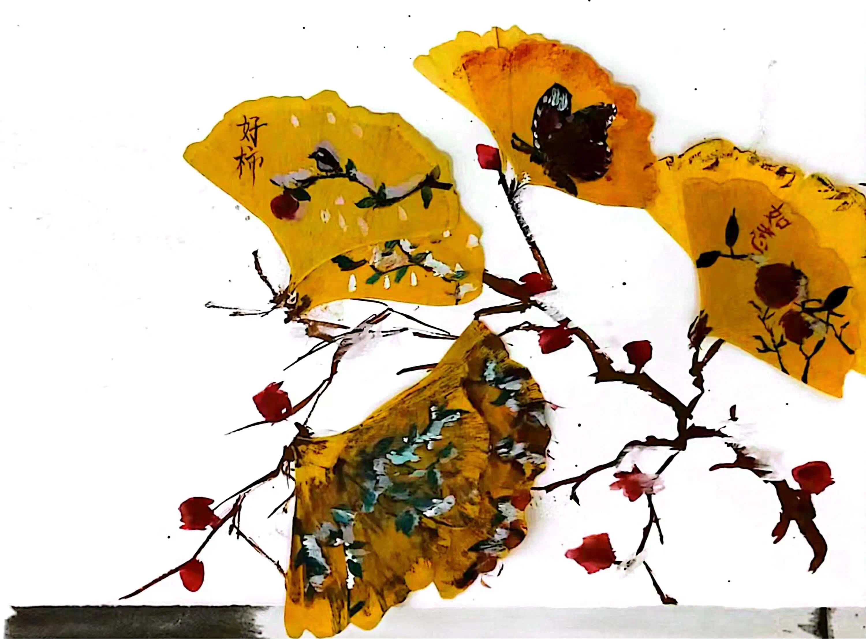 叶落知秋,落叶传情。同学们用心制作落叶创意画,用一幅幅富有创意的落叶拼贴画,定格秋天最美瞬间,赋予落叶新的生命力。2023级2班胡钰彤将树叶和蝴蝶结合起来,每一片“树叶”都由两片落叶制成,落叶上的“好柿”“如意”,寓意着好“柿”成双,事事如意,大自然的一草一木都是风景,正如诗句“柿叶翻红霜景秋”所描述的景色。2023级7班李思涵别出心裁,将落叶裁剪构成一位身穿汉服,面带微笑,在风中感受秋意的女孩,通过灵活拼接落叶,生动地表现秋景之美。2023级7班许晨雨呈现出一幅生动活泼的动植物落叶拼贴画,她将瓢虫绘制得栩栩如生,使它与“树叶”用另一种方式再次相遇,给予这些落叶第二次生命,富有创意又不失温暖。