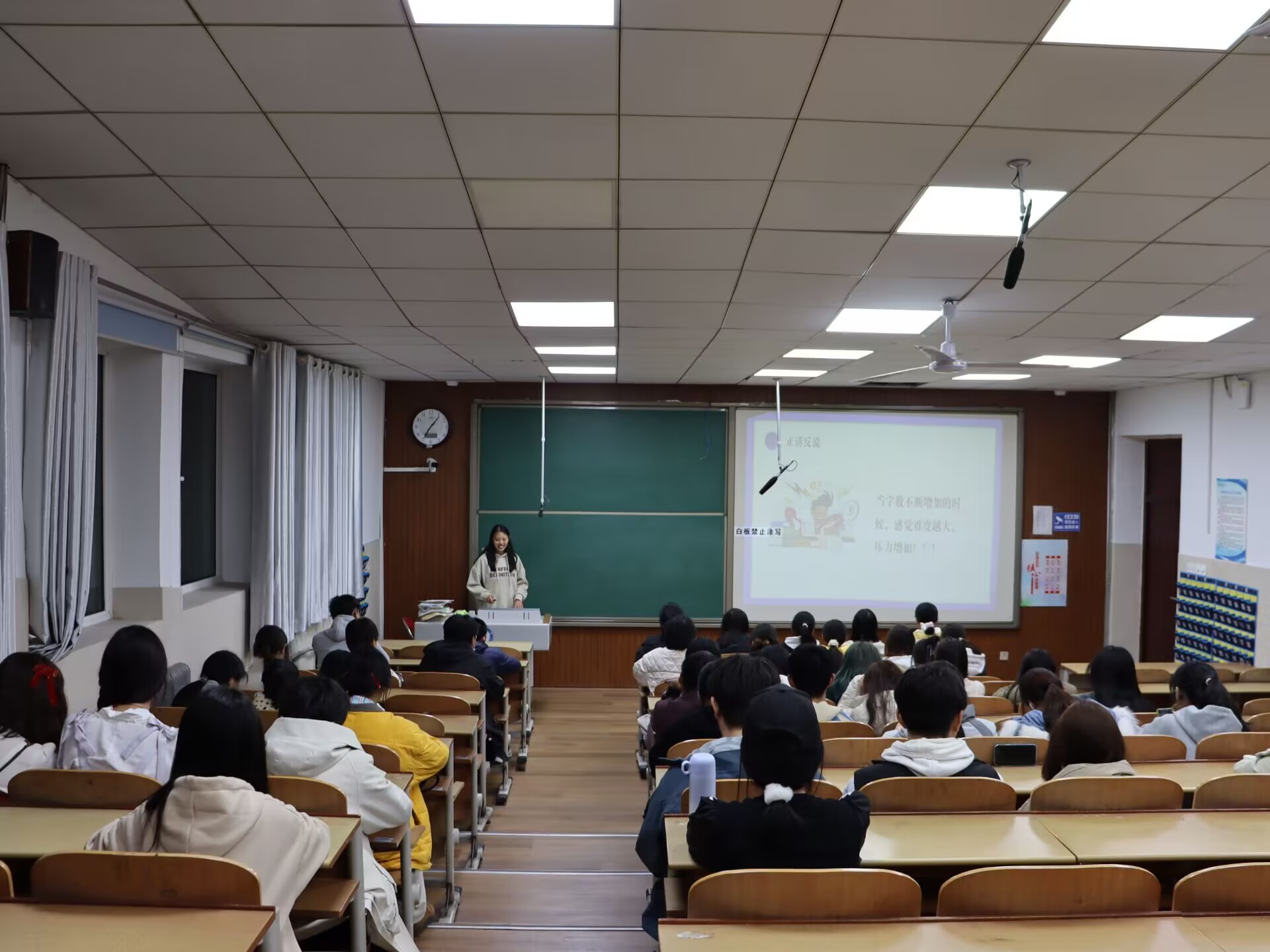 本次阳光心理大讲堂以“压力大了,充满电再出发!”为主题,帮助同学们有效管理心理压力。主讲人吕欢欢通过两个互动环节对同学们进行压力测试,首先在“正话反说”小游戏中,同学们认识到在难度随着字数增加而递增的情况下,压力同样增大。其次,在“大家一起来测一测”环节,她分别以不同的意象选择来分析各自代表的自身特质、感情态度等心理状态,以同学们对暴风雨的担忧状况这一意向引出有关话题。她还通过“瓦伦达效应”案例分析,使同学们了解到长期强压会带来不良后果,在日常学习生活中,更不应以过高的期望值来束缚自己。同时,同学们通过视频拓展学习和执行猴实验分析,学习心理学知识,进行自我调节。随后,吕欢欢指导同学们如何与压力共处。她通过举例说明日常生活中的常见压力,告诉在场同学要勇于接纳压力,借助“你比我猜”小游戏,指出行动有助于舒缓压力。最后,吕欢欢作总结发言,希望同学们能够明确自身压力源,培养积极心态。