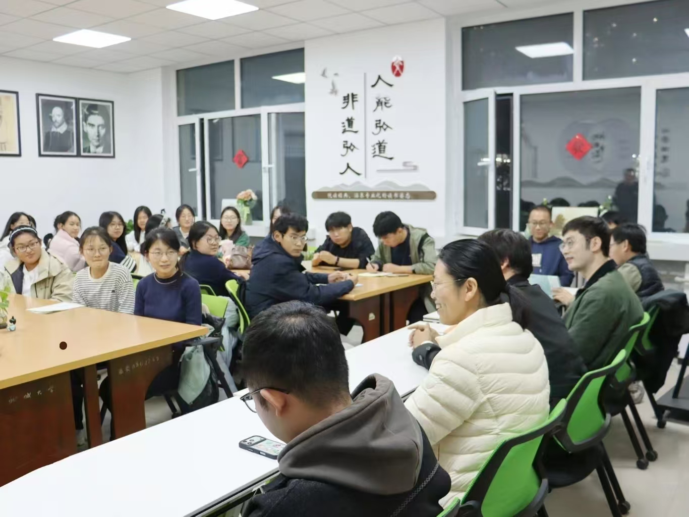 座谈会现场氛围热烈,教师代表与学生代表热情高涨,积极参与。袁辉首先阐明座谈主题,热情介绍到场教师,鼓励大家畅所欲言。他引用“旧学商量加邃密,新知培养转深沉”古语,深刻阐释学问传承与创新的真谛,勉励同学们精益求精、砥砺前行。