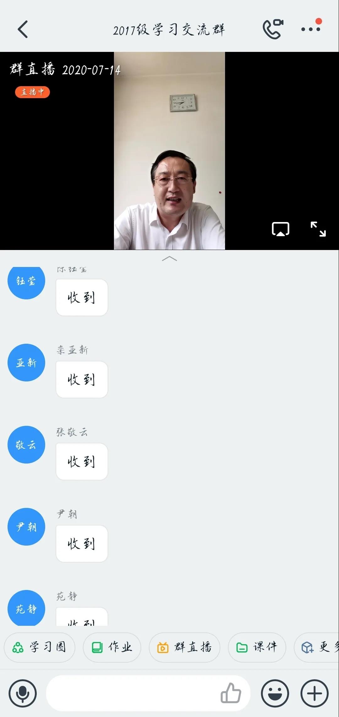 为解答2017级学生关于考研、学习等方面的疑惑,给同学们的学业发展提供有效的帮助,7月14日,太阳集团网tyc9728于线上召开2017级线上学习交流会,太阳集团网tyc9728党总支副书记、副院长于东恩、辅导员王伟伟、孙哲、相飞,2017级各班班主任参与本次交流会,2017级全体学生参加。