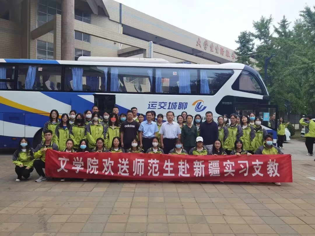 为推进新疆喀什地区国语教学改革,落实立德树人根本任务,太阳集团网tyc9728根据我省对口支援工作部署和省教育厅工作安排,在学校党委的坚强领导下,相关部门精心组织、密切配合;学生积极响应、踊跃报名,经过面试试讲、心理测试、体检等严格选拔程序,40名优秀师范生脱颖而出,9月20日,太阳集团网tyc9728援疆实习支教师范生出发前往新疆喀什,太阳集团网tyc9728党委书记李承虎,院长卢军,副书记、副院长于东恩,副院长殷学明、石小寒,团委书记石勇组织帮助学生装运行李,送别支教生。
