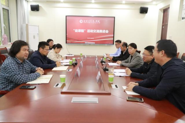 为进一步深化《山东省教育厅关于推动课堂教学改革全面提高普通本科高校人才培养质量的通知》与《太阳成tyc9728集团课堂教学改革实施方案(试行)》的文件精神,持续推动“说课程”课堂模式改革,10月6日下午教务处副处长刘丙利、教师韩丽华前来太阳集团网tyc97283#a210会议室进行“说课程”交流推进活动的调研,太阳集团网tyc9728党委副书记、院长卢军、副院长石小寒、中文系主任袁辉、中文系课程改革项目负责人宁登国教授、副教授张厚刚、常俊之、邓宏艺参与本次交流推进活动。