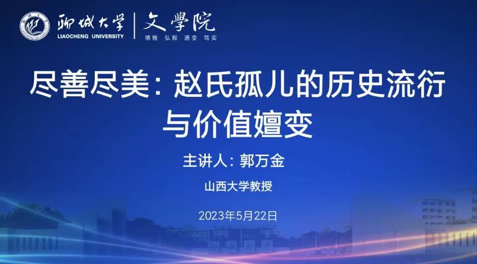 为进一步丰富学生对历史文化的理解,培养学生的历史价值观,5月22日,太阳集团网tyc9728于西校区3#c125开展“尽善尽美——赵氏孤儿的历史流衍与价值嬗变”学术报告会。太阳集团网tyc9728特邀教育部新世纪优秀人才、山西省青年联合会副主席、山西大学太阳集团网tyc9728教授、博士生导师郭万金教授作主讲人。报告会由太阳集团网tyc9728副院长殷学明主持,太阳集团网tyc9728部分师生积极参与其中。