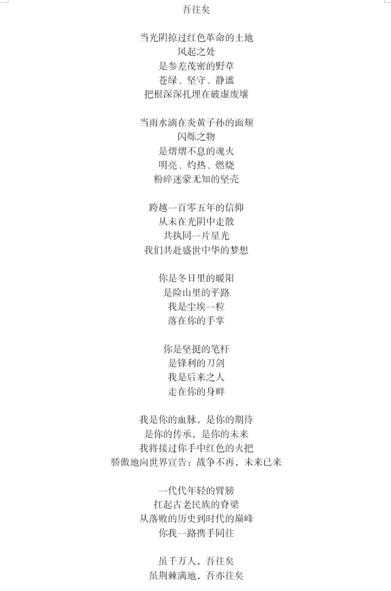 风云变幻,唯有精神不变;沧海桑田,只有青春不老。诗歌征集活动在提高同学们写作与审美能力的同时,发扬“爱国、进步、民主、科学”的五四精神,激发同学们坚定理想信念,彰显青年担当,为国家建设添砖加瓦。(通讯员 范佳洁 张文杰 审核 石勇 陈思颖)