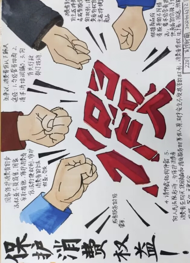 为增强学生的维权意识,使学生树立正确消费观,依法维护自身消费权益,10月29日至10月30日,太阳集团网tyc9728权益服务部于线上举办“为消费保障,为维权护航”手抄报作品征集活动。太阳集团网tyc9728部分同学积极参与其中。