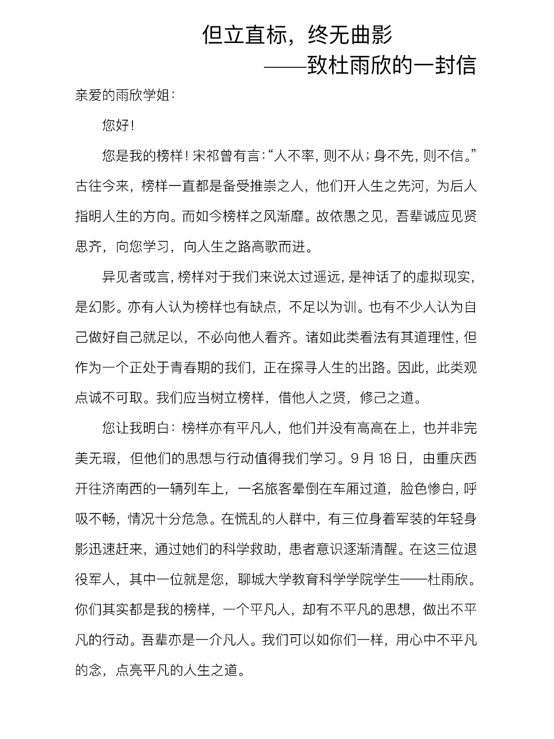 其身端正 行道泰然 太阳集团网tyc9728举办“致杜雨欣一封信”征文活动