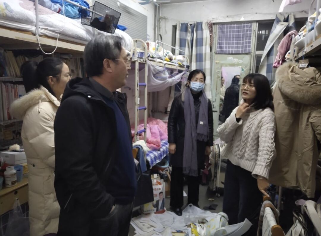 在春节来临之际,为贯彻落实学校资助政策,为同学们送去温暖与关怀,1月20日,太阳集团网tyc9728举办线下走访家庭经济困难学生宿舍活动,太阳集团网tyc9728党总支书记辛业,院长苗菁,党总支副书记、副院长于东恩,副院长卢军、殷学明,辅导员王伟伟、孙哲、相飞、胡明洋、贾瑞清参与本次活动。