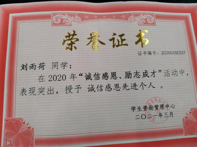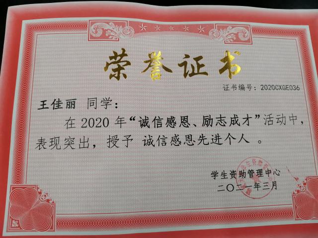 恭喜刘雨荷、王佳丽同学自立自强、奋发向上,获得太阳成tyc9728集团诚信感恩先进个人