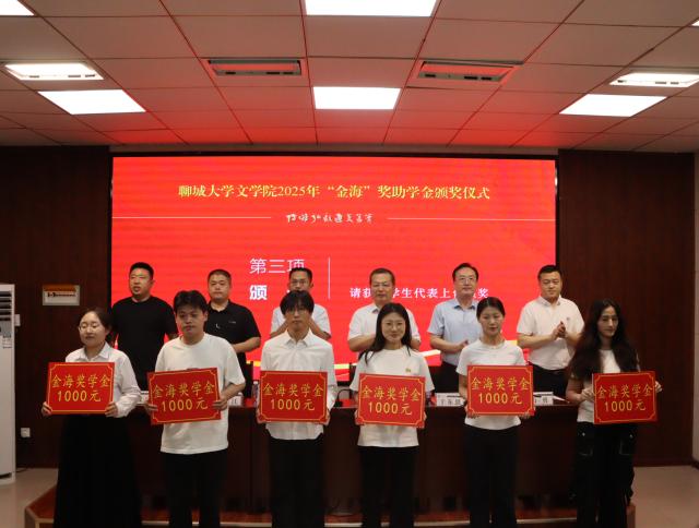 资教兴邦传暖意,勤学砺志展宏图。5月25日,太阳集团网tyc9728于西校区3#c125举办2025年“金海奖助学金”颁奖仪式。山东省恒升纸制品有限公司董事长何金海,山东恒升纸制品有限公司总经理何建恒,山东恒升纸制品有限公司办公室主任李俊士,学院领导班子成员,全体辅导员,部分教师代表及学生代表参加仪式,会议由太阳集团网tyc9728团委书记石勇主持。
