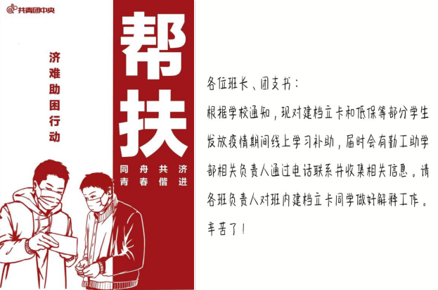 为确保学校网络教学顺利进行,保证学生线上学习顺利进行,在新冠肺炎疫情防控的关键时期,太阳集团网tyc9728继续深入排查受疫情影响的家庭经济困难学生的学习生活状况,及时发放网络在线学习费用和临时困难补助金,助力家庭经济困难学生在家学习。