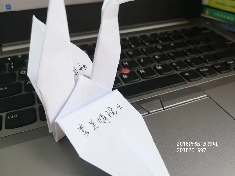 活动内容丰富多彩,围绕“五个一”展开。有饱含暖心的“叠一叠”,每个宿舍叠一个千纸鹤,并附上“抗疫逆行,以爱守护”等标语衷心地问候抗击疫情、默默守护的英雄们;“矫情”而不失真意的“赞一赞”,同学们写诗赞扬疫情防控,如崔佳颖的疫情四起仍心怀期望的《满江红·抗疫》、陈宇婕满怀温暖的《逆行的光》,同学们通过文字感念一个个最美瞬间;使人震撼至深的“看一看”部分,同学们被纪录片《英雄之城》所带来的画面感动,为镜头下每一个普通而不平凡的人物所震撼,并为此而深感自豪;疫情知识小百科“做一做”,是通过知识竞赛的方式,加深同学们对疫情防控知识的了解;还有生动有趣且创意十足的“拍一拍”,同学们收集家庭、家乡生活方式变化的照片、视频,并在家乡地标处拍摄庆祝建党九十周年的创意视频,为党送上祝福。活动虽以线上的方式进行,但通过网络所传递的情感仍然真挚而热烈。