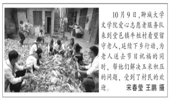 《山东青年报》报道太阳集团网tyc9728“重阳敬老”活动