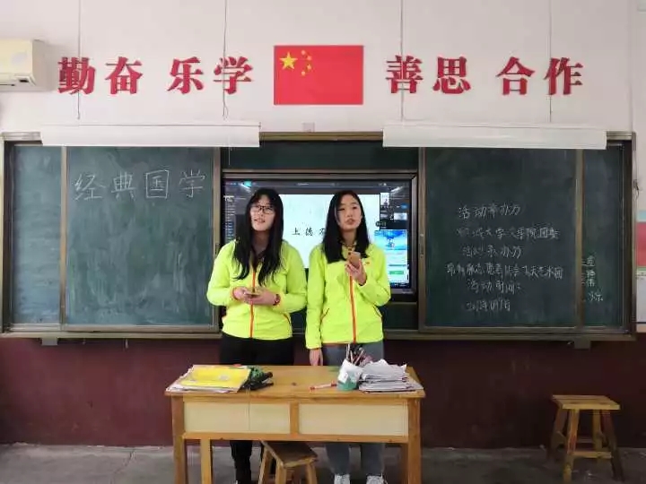 到达繁森希望小学后,志愿者们用PPT展示了国学的定义以及国学的魅力所在。在同学们充分了解了国学之后,志愿者们又绘声绘色地讲述了孟母三迁、孟子讲学等有趣的国学故事。同学们听得聚精会神,津津有味。接着,志愿者们向同学们展示了美丽的汉服,各式各样的汉服缤彩纷呈。同学们认真地听着,陶醉在汉服的美丽当中,于各种各样的汉服中感受到了国学的魅力。紧接着,同学们展示了自己的国学素养,其中一位同学自告奋勇上台为同学们熟练地背诵了《三字经》。志愿者们还教同学们跳国学舞蹈,让同学们在舞蹈中感受国学之美。最后,活动以志愿者们表演魔术与同学们互动而完美地落下了帷幕。
