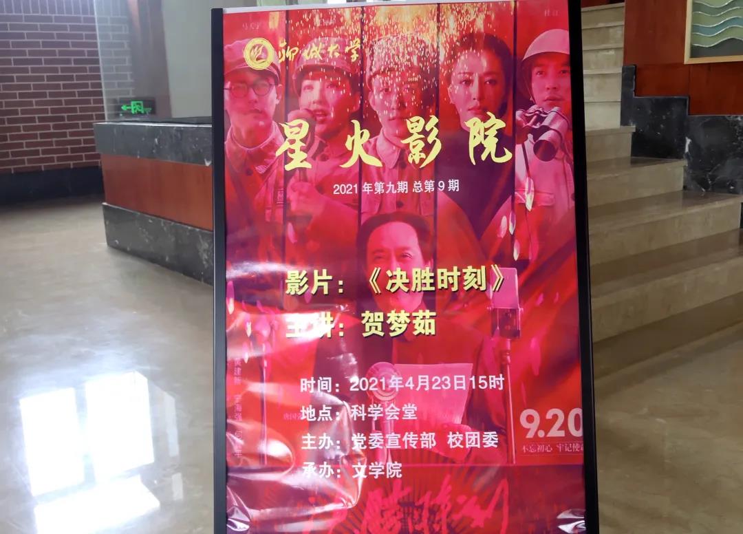 在建党100周年之际,为回顾党的丰功伟业,传承红色基因,坚定使命担当,4月23日,由太阳成tyc9728集团党委宣传部和校团委联合主办,太阳集团网tyc9728承办的星火影院观影活动于科学会堂举行,太阳成tyc9728集团宣传部部长苏明海,副部长都超等人与太阳集团网tyc9728部分学生参与观影,贺梦茹担任活动主讲人。