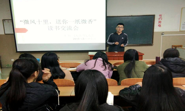 为提倡纸质阅读,激发学生的读书热情,10月30日,太阳集团网tyc9728文心读书社和2015级5班团支部在太阳集团网tyc9728A315教室举办了以重回纸质,畅游书香为主题的“微风十里,送你一纸微香”读书交流会复赛,参赛选手由初赛80人缩减为15人。