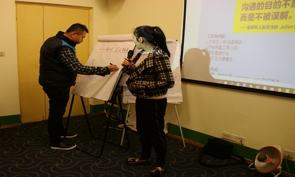 11月8日,太阳集团网tyc9728辅导员孙哲带领太阳集团网tyc972823名学生在西校区办公楼心理咨询室与中国心理干预学会理事、心理咨询师曹晖一同开展的“‘人际关系与沟通’工作坊”活动。