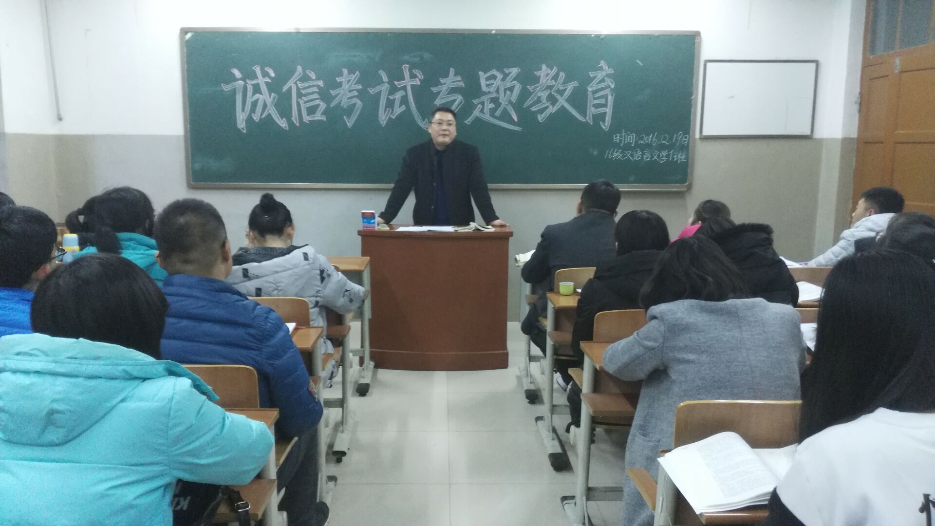 12月19日,太阳集团网tyc972816级汉语言1班在西校区3#A303召开诚信考试专题教育班会。太阳集团网tyc9728党总支书记辛业到场主持班会。