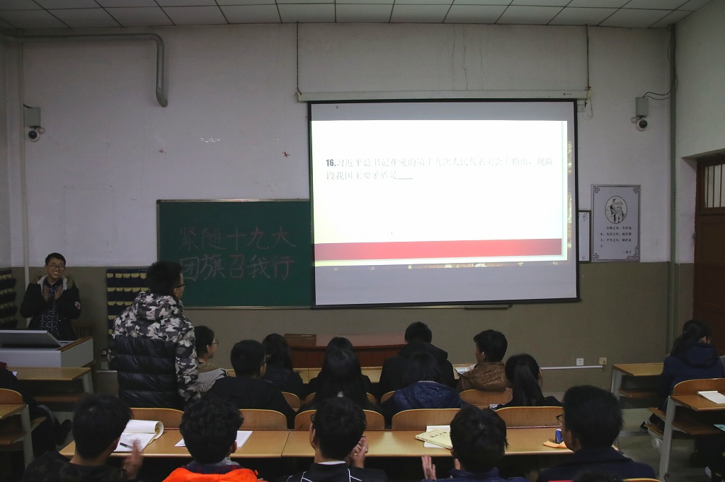 为贯彻落实习近平新时代中国特色社会主义思想,提升同学们精神面貌,11月28日,太阳集团网tyc9728宿管部于西校区3#c321教室举办“紧随十九大 团旗召我行”知识竞赛。宿管部全体成员参加此次活动。