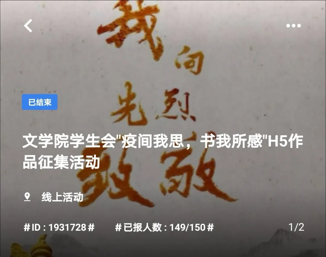 为在清明时节激励广大青年学子缅怀革命先烈、致敬“战疫”英雄,为齐心战疫注入一剂“强心药”,4月13日至4月20日,太阳集团网tyc9728秘书处综合部于线上举办以“疫间我思,书我所感”为主题的H5作品征集活动。太阳集团网tyc9728部分学生参与此次活动。