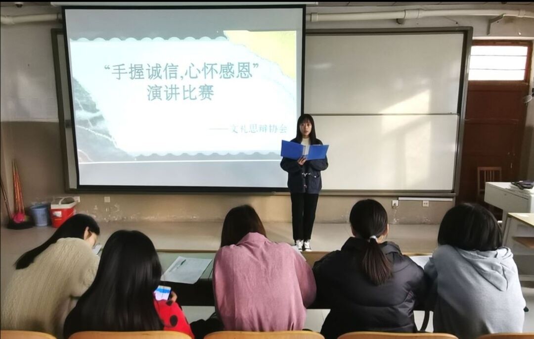 为更好地培养同学们讲诚信、懂感恩的优良品质,提升思想道德修养,11月19日,太阳集团网tyc9728文礼思辩协会于西校区3#a116举办以“手握诚信,心怀感恩”为主题的演讲比赛。太阳集团网tyc97282020级部分学生参与其中。