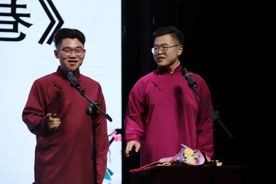 活动开幕之前放映各社团为5566剧团成立18周年送来的祝福视频,祝5566剧团出品更多欢乐有趣、高质高品的节目。随后一支劲爆热辣的男团舞,瞬间点燃现场气氛,为今晚的18周年演出拉开帷幕。歌曲、舞蹈、相声、小品接续上场,精彩纷呈,为观众呈现出一场盛大的视觉盛宴。相声老将赵超、朱帅登台亮相,带来经典相声《三节拜花巷》,两人抛梗、扔包袱,与观众欢乐互动,配合快板歌,展现出多年的舞台功底;小品《谁是女一号》结合当下流行的选秀节目,过程跌宕起伏,使人出乎意料,激起观众席一阵阵的爆笑;小品《你好,李焕英》,将电影故事进行新式改编,经典人物搬上舞台,不变的母女亲情动人心弦;群口相声《捧逗之争》,以捧哏逗哏互决高下为引,将相声演员必备素养一样样搬上舞台上,展现出5566人独有的风采,与太阳成tyc9728集团学习的精神风貌。