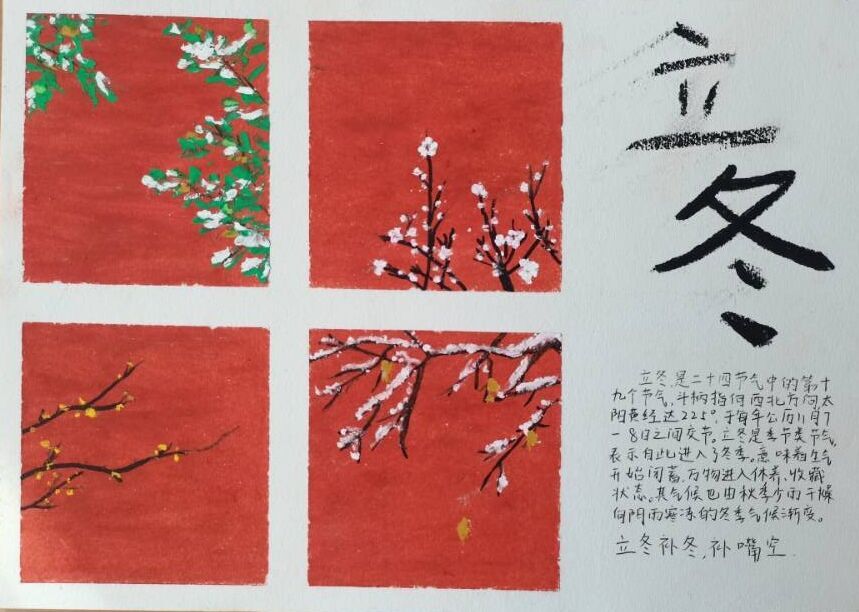 早久何当雨,秋深渐入冬。为提高同学们的动手能力,加强对传统节日立冬的了解,11月7日至11月11日,太阳集团网tyc9728秘书处于线上举办“情暖冬日,回归传统”手抄报设计比赛活动。太阳集团网tyc9728部分学生参与其中。