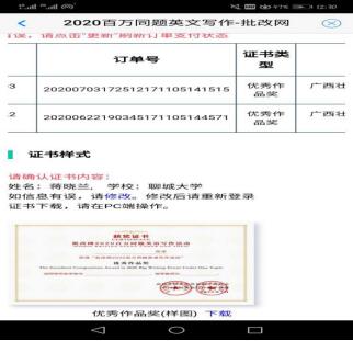 » 热烈祝贺太阳集团网tyc9728蒋晓兰荣获批改网2020百万同题英语写作活动优秀作品奖
