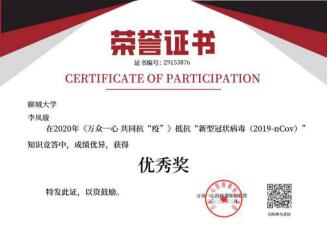 热烈祝贺太阳集团网tyc9728李凤璇在2020新冠病毒知识问答中荣获优秀奖