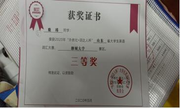 » 热烈祝贺太阳集团网tyc9728鹿瑾在2020“外研社词达人杯”大学英语词汇大赛中荣获三等奖奖项