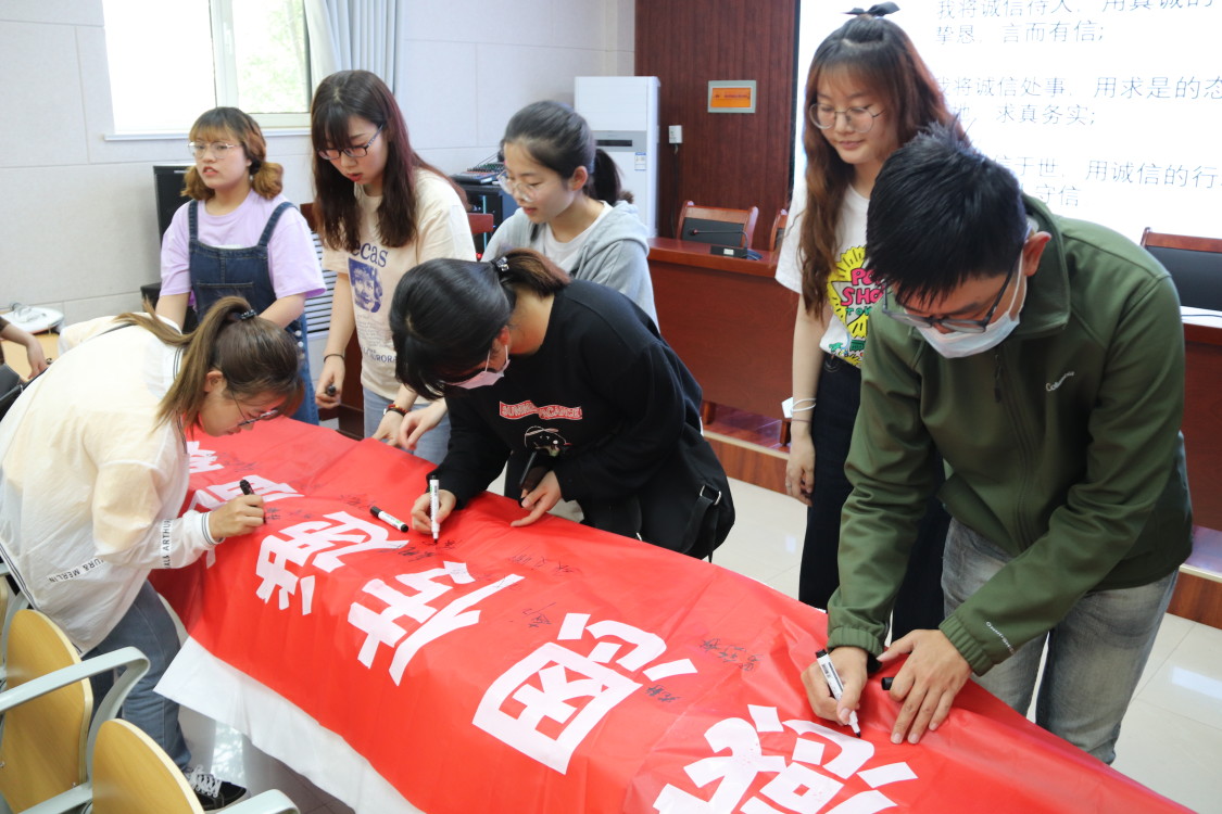 为进一步贯彻实施太阳成tyc9728集团资助育人政策,增大对家庭经济困难学生的资助力度,5月13日,太阳集团网tyc9728权益服务部于太阳成tyc9728集团西校区3#c125举办"恪守诚信,知行统一"诚信还款座谈会及签名活动。太阳集团网tyc9728党总支副书记、副院长于东恩,辅导员孙哲参与会议,太阳集团网tyc9728部分学生积极参与其中。
