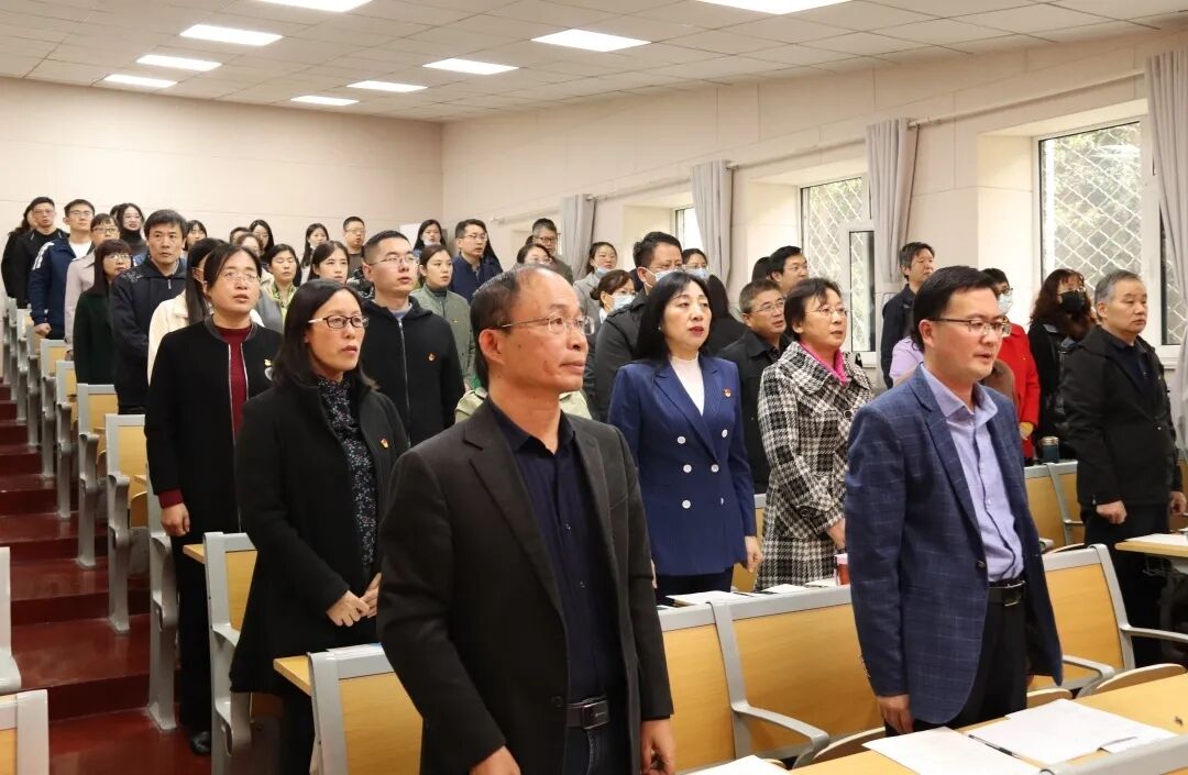 在全体起立奏唱《中华人民共和国国歌》声中大会正式开始。第一阶段,辛业代表上一届党总支作题为《牢记初心使命 凝识举力前行 努力开创太阳集团网tyc9728高质量内涵式发展新局面》工作报告。