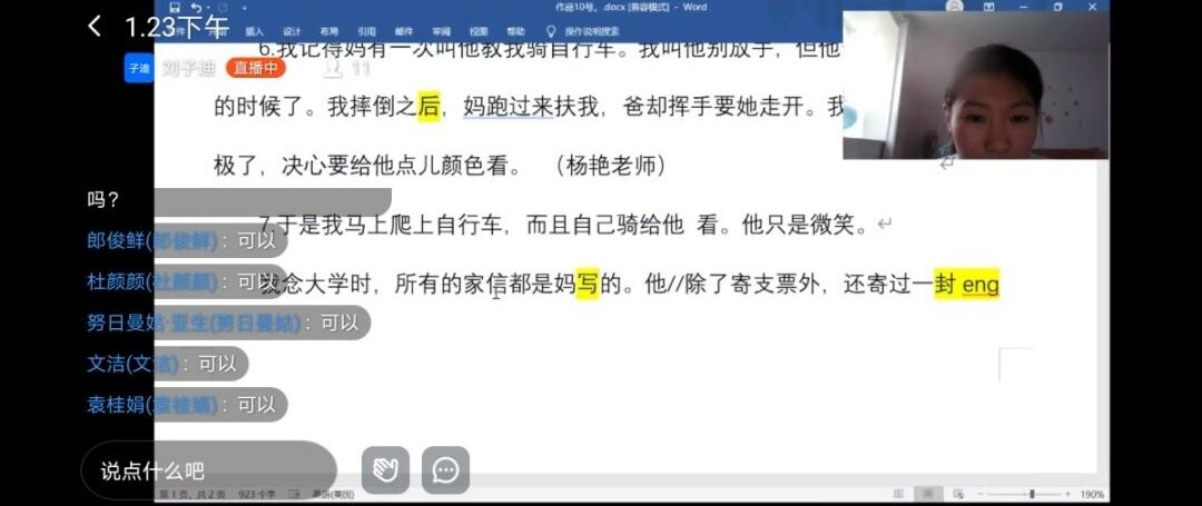 培训课程采取线上教学模式,助教们充分利用时间,提前发布相关课堂内容的学习资料,以助学员们提前预习,在节约时间的同时提高学习效率。课堂上,老师们针对发音原理进行互动式讲解,如韩丽助教在每一位学员朗读时,逐字逐句地纠正学员实时发生的发音错误。助教们的课堂也不是单方面的提问,助教们鼓励学员积极提出学习中出现的问题,并予以耐心严谨的解答。
