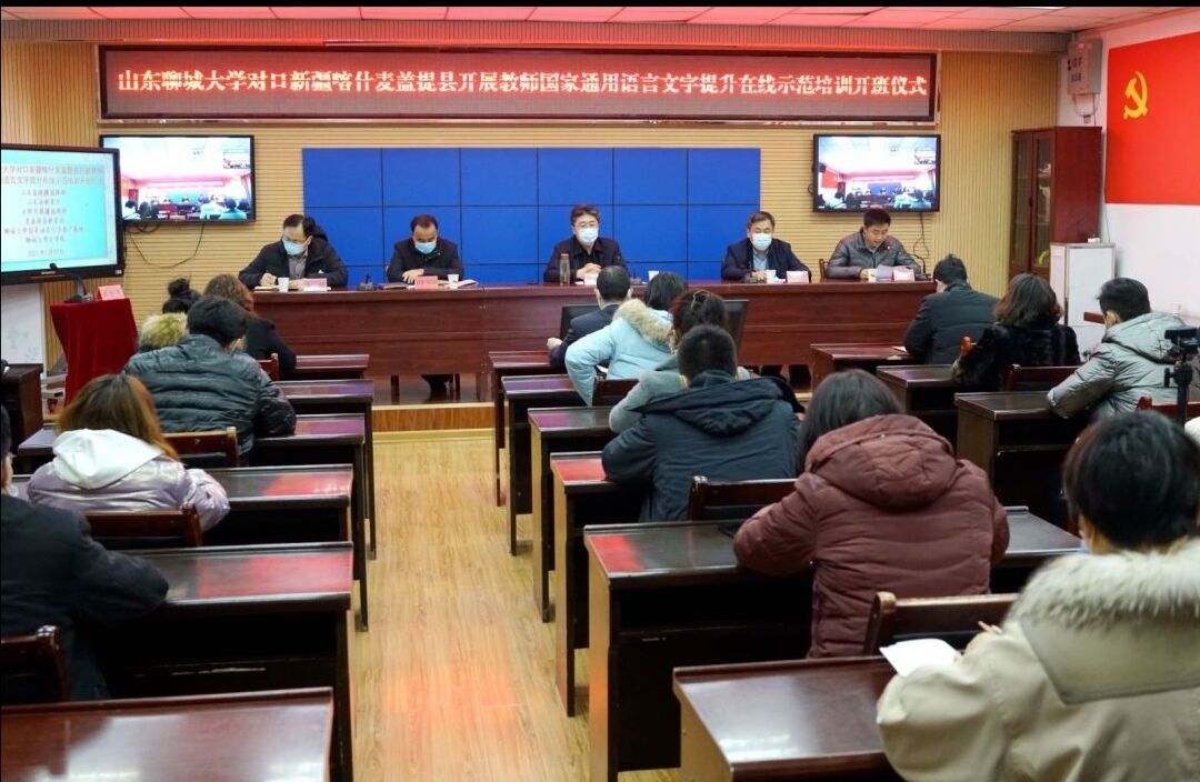 培训活动由山东省援疆指挥部和山东省教育厅联合主办,日照市援疆指挥部、麦盖提县教育局、太阳成tyc9728集团国家语言文字推广基地、太阳集团网tyc9728联合承办。
