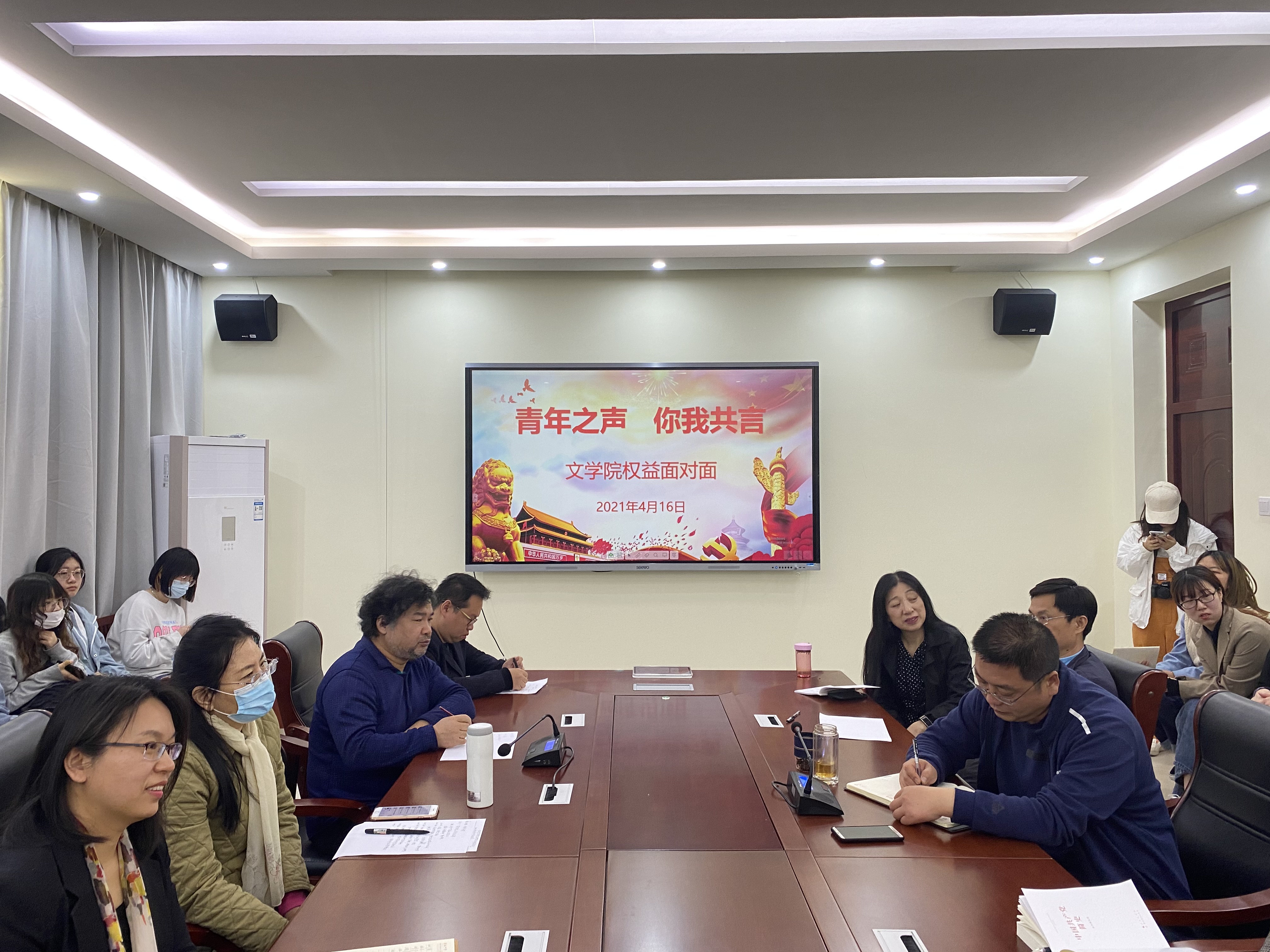 为保障学生权益,促进太阳集团网tyc9728民主发展与建设,4月15日,太阳集团网tyc9728权益服务部于西校区3#c210举办“权益面对面”师生交流会。太阳集团网tyc9728党总支书记辛业,副处级组织员贾辉,辅导员王伟伟、相飞,部分教师,权益委员参与其中。