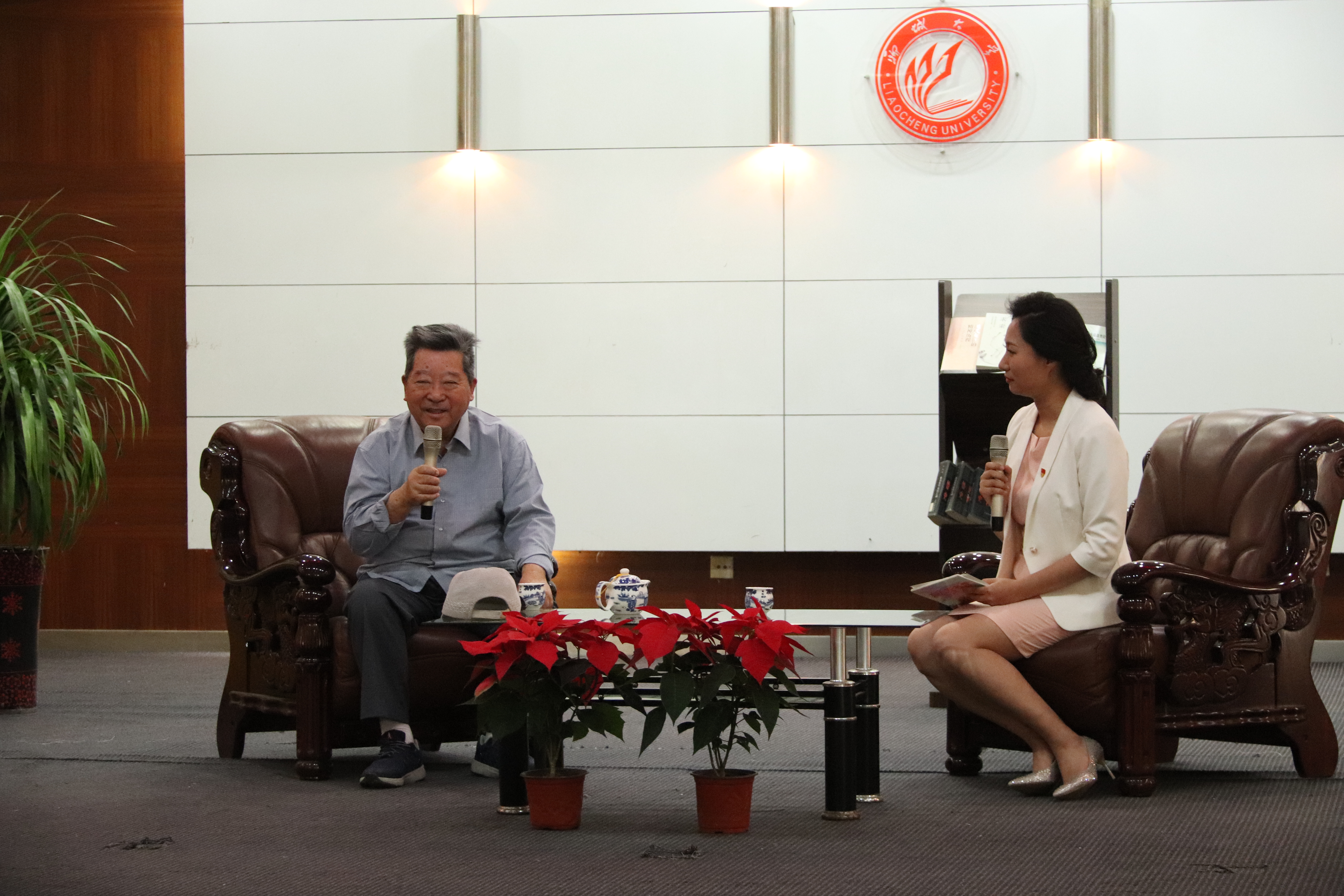 活动过程中,在主持人刘姗的引导下,韩立群回忆与夫人单力恰的爱情故事,他谈到,过去十五年两地分居的爱情长跑,使两人感情愈发坚贞不渝,几十余载的婚姻生活中,双方相互支持,共同进步。回忆过后,韩立群以其改革亲身经历为出发点,深情讲述中文系教学改革发展历程。他认为,过去中文系往往在文学、语言和语文三方面出现失衡现象,因此,打破传统单一的重知识教学模式、创造全新能力培养的教学方法成为推动中文系教育体制改革的必要举措。会上,韩立群着重强调学校师德师风建设的重要性,勉励青年教师善思进取,笃志博学。韩立群指出,青年一代应扛起理想风帆,筑牢奋斗基石,承前人之优秀思想,续创新开拓之路,继续奋斗,凯歌前行。他表示,人生是一条没有尽头的路,一方面,我们要做到“接力”,接过老一辈拓荒人艰苦奋斗、勇担使命的接力棒,而后奋力向前;另一方面,我们要做到“创新”,创造出自己的路,对历史、对社会做出贡献。访谈最后,韩立群同现场师生共观学生、家人、同事为其录制的祝福视频,数名学生集体起立,倾情朗诵韩立群创作的《聊大颂》,深切表达全体师生对太阳成tyc9728集团的热爱与祝福。在太阳成tyc9728集团今昔对比的图像展映中,本期活动圆满结束。