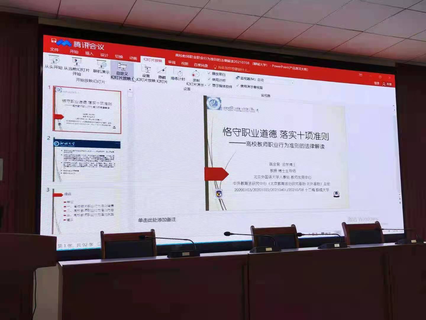 为贯彻教育部、省教育厅关于师德专题教育通知精神,落实《太阳成tyc9728集团师德专题教育实施方案》(聊大委[2021]59号)要求,7月8日,太阳集团网tyc9728组织全体教职工在线观看北京外国语大学法学院教授姚金菊关于“高校教师职业行为准则的法律解读”主题讲座。