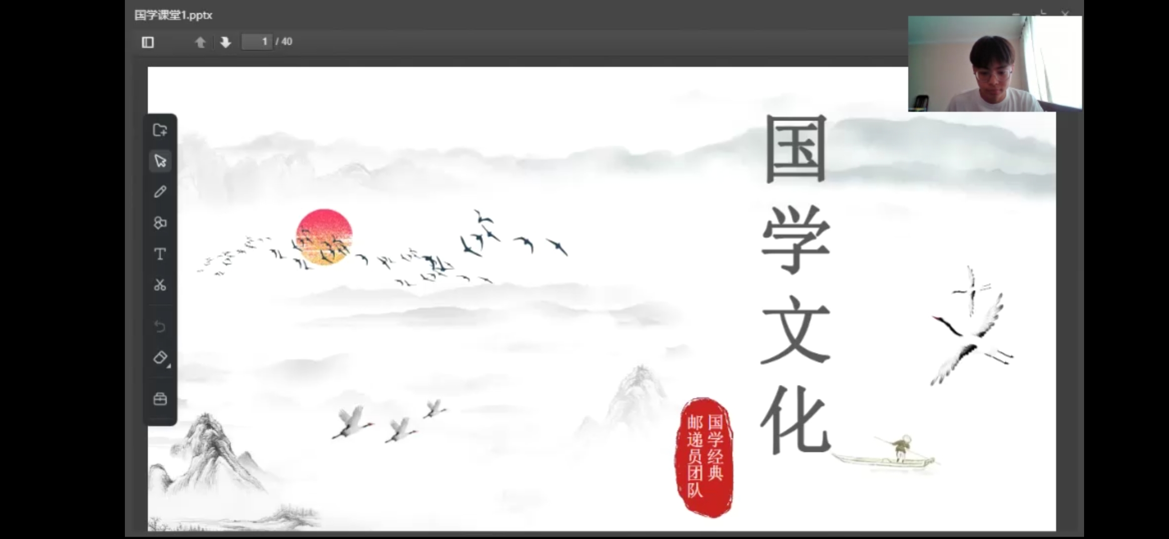 刘秋实在总结上堂课知识的基础上,从儒家经典、《孟子》赏析、古诗分享和诗歌赏析四部分展开授课。他从历史典故、孟子学说、孟子影响等方面与学生共同探讨儒家经典,以王维的《送元二使安西》、李白的《将进酒》为切入点进行古诗鉴赏,将传统文化的精华植根至学生心灵。刘秋实注重师生互动,倡导学生举手发言,各抒己见,提高在线教学质量,培养学生自主学习和思考能力,确保实现教学效果最大化。窦亨巧用视频让课堂更加生动高效,采用学生喜闻乐见的形式,讲解《苔》、《少年中国说》与《念奴娇·赤壁怀古》中的深刻哲理,让国学更通俗易懂、教学更显成效。实践过程中团队队员协调合作,在保证教学效果的同时抓好课后跟踪,苏比旦为培训教师提供可在线查看与下载的教学资料,保证学员们日后能及时巩固学习成果。