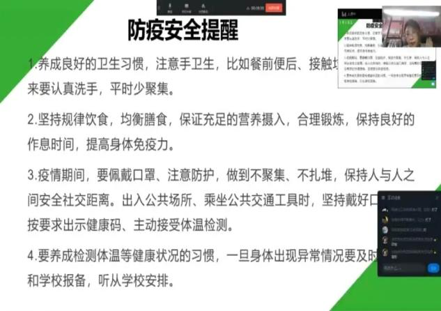 “生在国旗下,长在阳光里,人民有信仰,国家有力量,目光所致皆为华夏,五星闪耀皆为信仰。”课堂在同学们阵阵朗读声中开篇,采用互动讲解的方式与同学们重温红色记忆,感悟红色经典;其中,丰富多彩的课件更是带领同学们走进党史,辨别红旗、聆听红歌,课堂气氛活跃。在防疫小课堂上借助“七步洗手法”视频,用与同学们一起线上洗手的方式,普及保持个人卫生的知识;与此同时,从佩戴口罩、疫苗接种等方面入手,向同学们宣传防疫知识,在一步一步教学生如何更安全戴口罩的过程中,帮助学生提高防疫积极性。