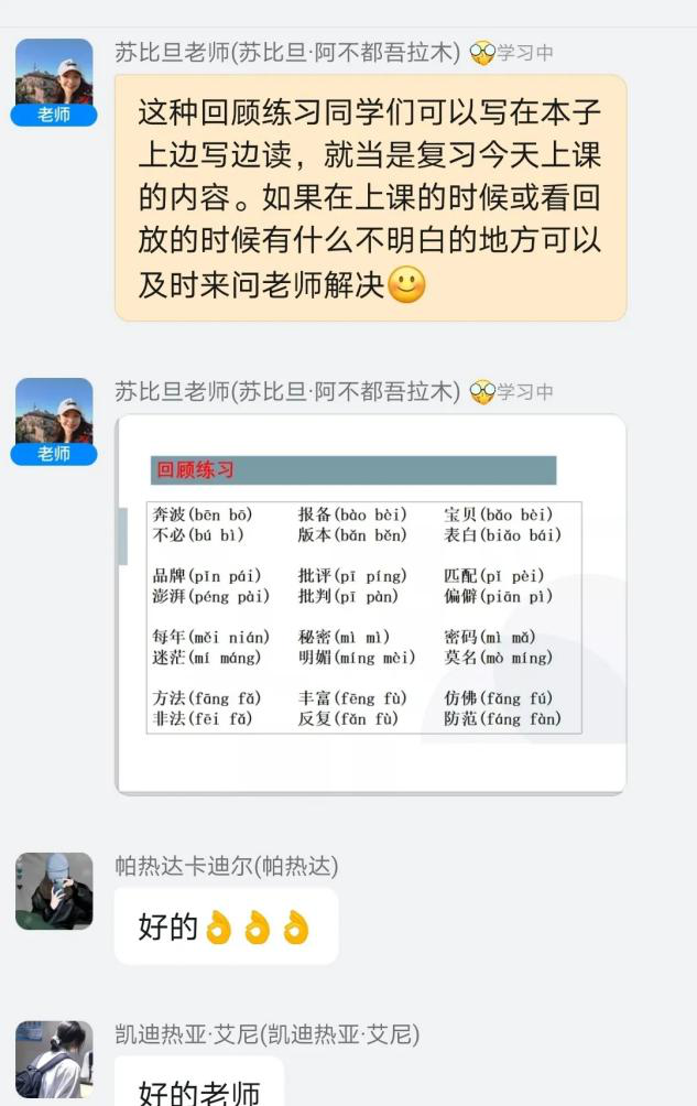 为深入贯彻全国语言文字会议精神,国学经典“邮递员”团队,在线上展开“鲁新共语中国话,聊喀齐筑民族情”专项社会实践活动。8月17日至21日,团队开展普通话课堂,在孙哲和冯静两位指导老师带领下,实践队员韩丽、苏比旦、张志琪等担任授课教师,面向新疆伽师县英买里乡中学90名教师,七年级、八年级120名学生展开教学。