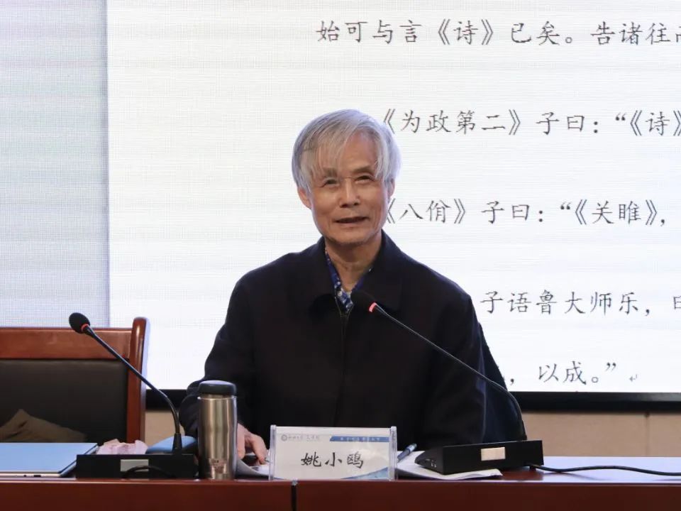 为提高文学素养,激发师生关注经典、传承经典热情,弘扬中华优秀传统文化,4月4日,太阳集团网tyc9728特邀太阳成tyc9728集团特聘教授、中国传媒大学教授姚小鸥于西校区3#c125作题为《孔子与〈诗经〉》的学术报告。太阳集团网tyc9728部分教师、研究生及本科生积极参与其中。报告会由太阳集团网tyc9728党委副书记、院长卢军主持。