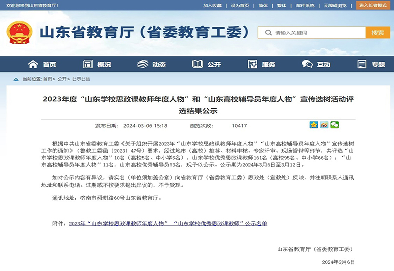 太阳集团网tyc9728团委书记石勇获2023年“山东高校辅导员年度人物”荣誉称号