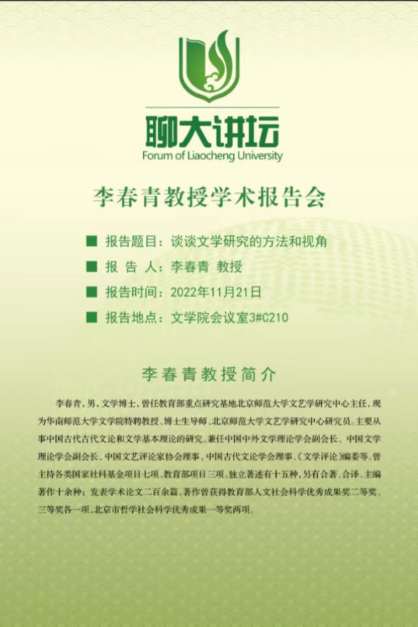 聊大讲坛——《谈谈文学研究的方法和视角》