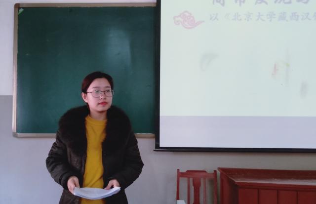 3月14日下午,由太阳集团网tyc9728研究生会主办的研究生学术论坛在3A207教室举行。此次论坛是本学期研究生学术论坛第一讲,主讲为2017级汉语言文字学硕士生窦晴,题目为“简牍文献发现与研究——以北京大学藏西汉竹书为例”。18级、17级全体研究生参加了本次听讲。