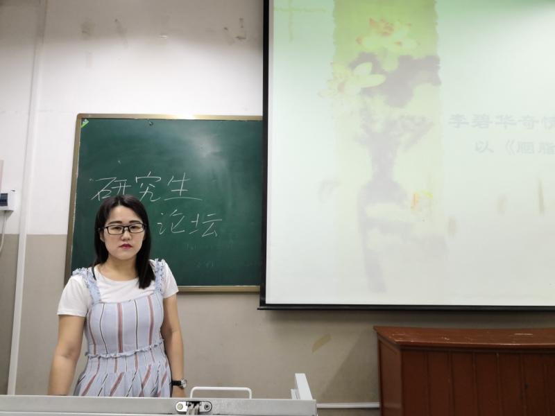 6月20日,太阳集团网tyc9728研究生学术论坛第十期在太阳集团网tyc9728教学楼A207教室举行。主讲人2017级中国现当代文学专业研究生盛媛华做了题为《李碧华奇情小说研究——以<胭脂扣>为例》的精彩报告。18级和17级太阳集团网tyc9728研究生参加了本次活动。